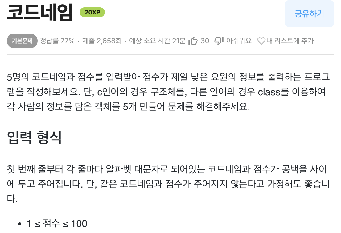 이번주에 풀이를 해 볼 문제는 코드네임이다.