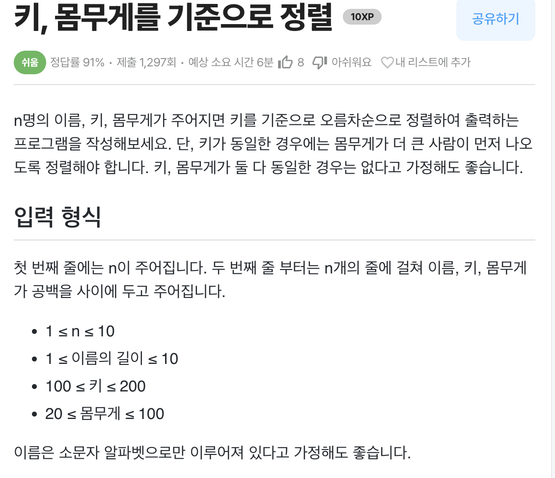그 후 문제의 주어진 사항에 맞게 정렬한 후 출력한다.