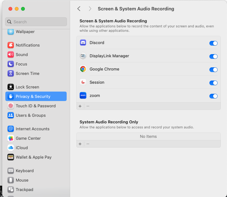 화면 녹화를 허용해주면