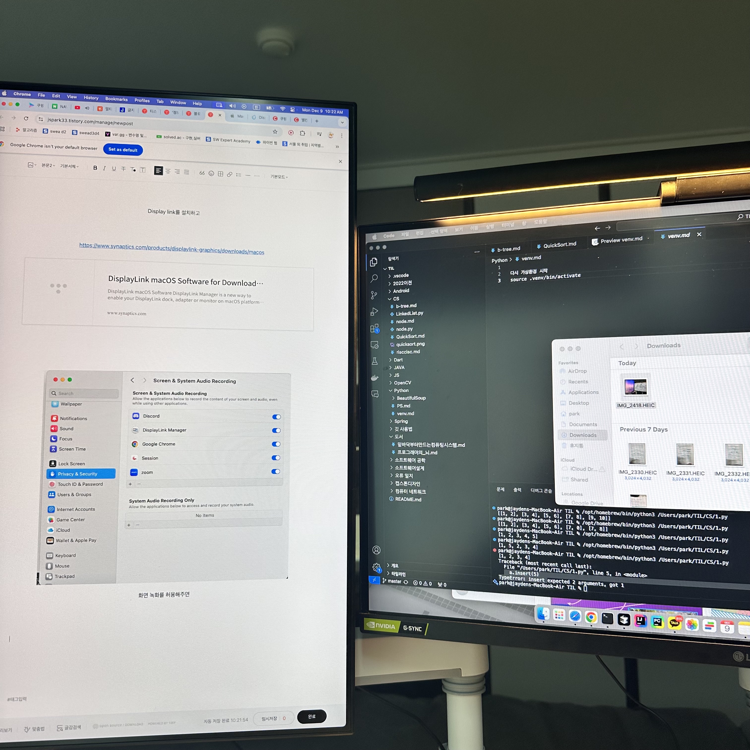 데스크 테리어를 하면서 모니터 암을 설치하고 모니터 2대를 장착했다.