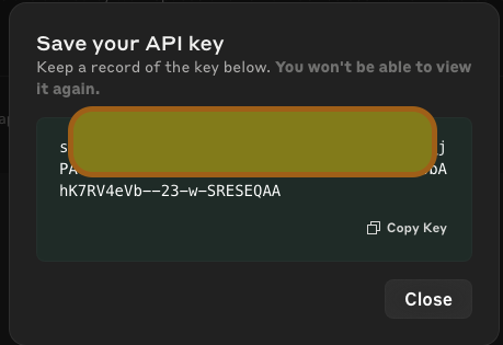 그러면 이렇게 API key가 생성된다.