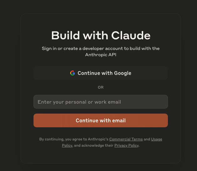 일단 먼저 클로드 API 키를 발급 받기 위해 Anthropic Console 사이트에 들어가 회원가입을 한다.