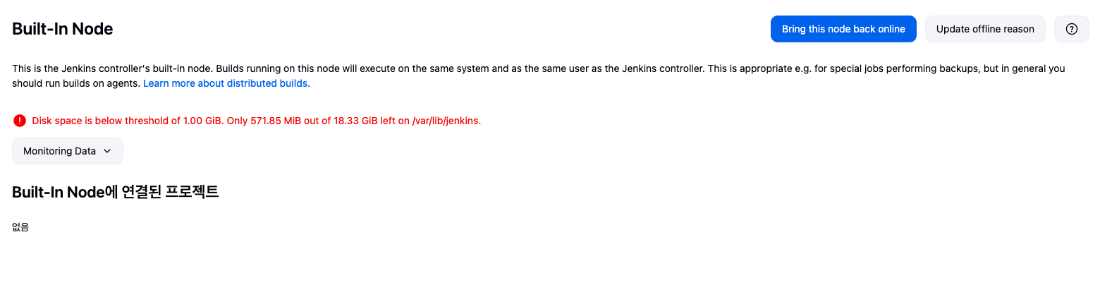 1. 젠킨스 빌드가 총 60개 이상이 돌아가서 젠킨스 파일이 너무 많이 생겼다 -> 용량 부족