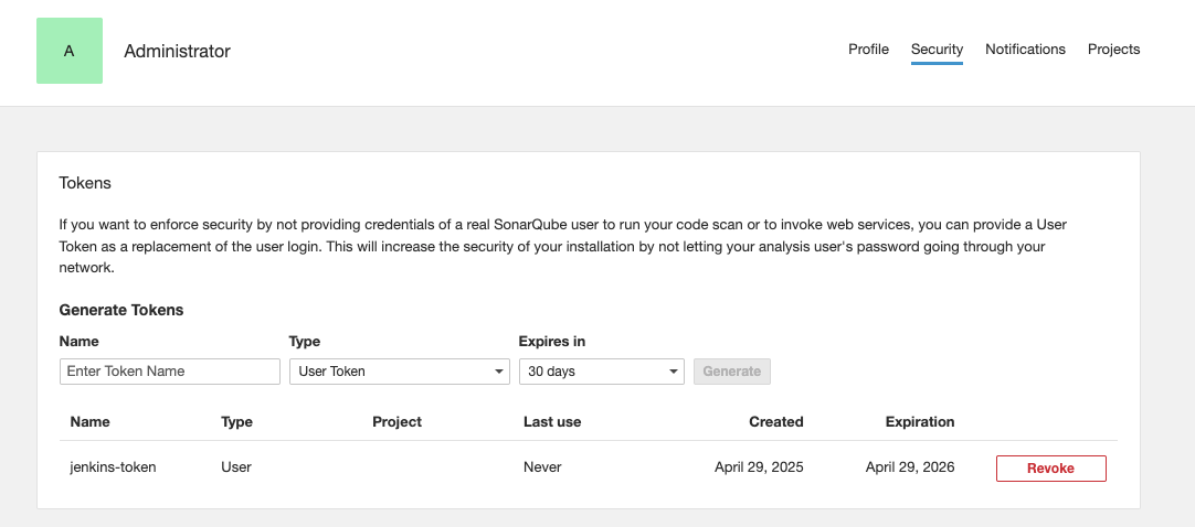 projectKey는 이제 sonarCube에 생성될 프로젝트의 이름이다.