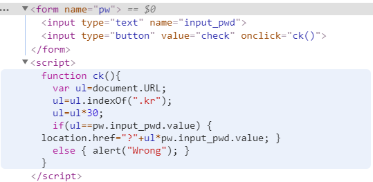 코드를 살펴보니 form태그 안에 input태그와 button으로 입력한 값을 가지고 버튼을 클릭시에 ck함수가 실행되는 것으로 보인다