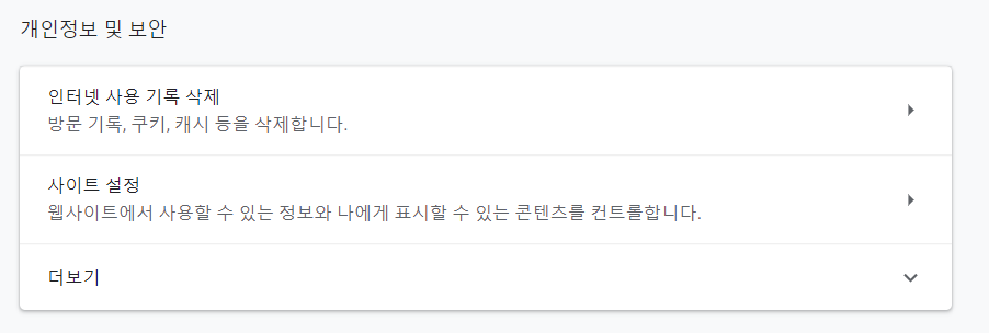 크롬의 설정에 들어가 사이트설정을 누른뒤