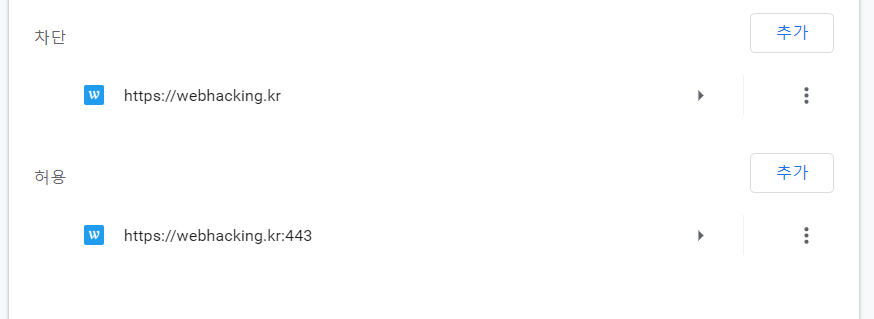 크롬의 고급설정에 들어가서 webhacking.kr의 자바스크립트를 차단해보았다.