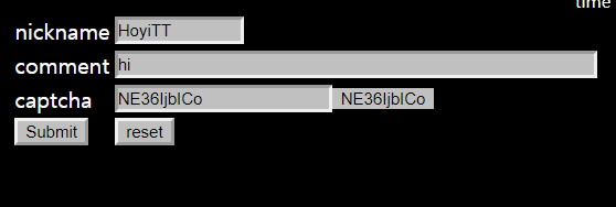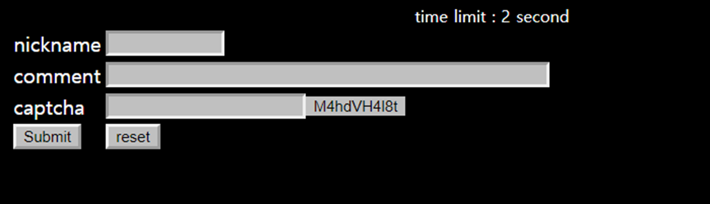 form태그 안에 nickname, comment,captcha값을 입력할수 있는 input-type:text 태그와