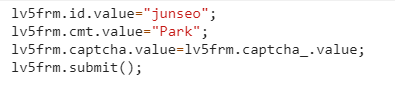 개발자도구를 이용하여 lv5frm.captcha_.value를 입력해보니 captach텍스트 박스 옆에있던 문자열임을 알 수 있습니다.