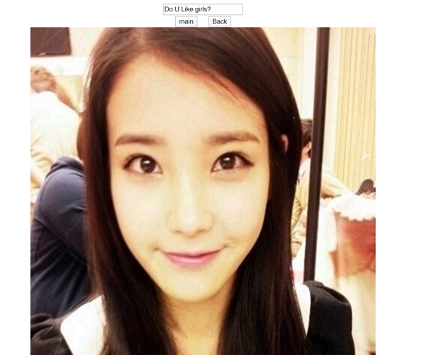 Do u like girls? 라는 텍스트 상자와 두개의 버튼 그리고 아이유의 사진이
