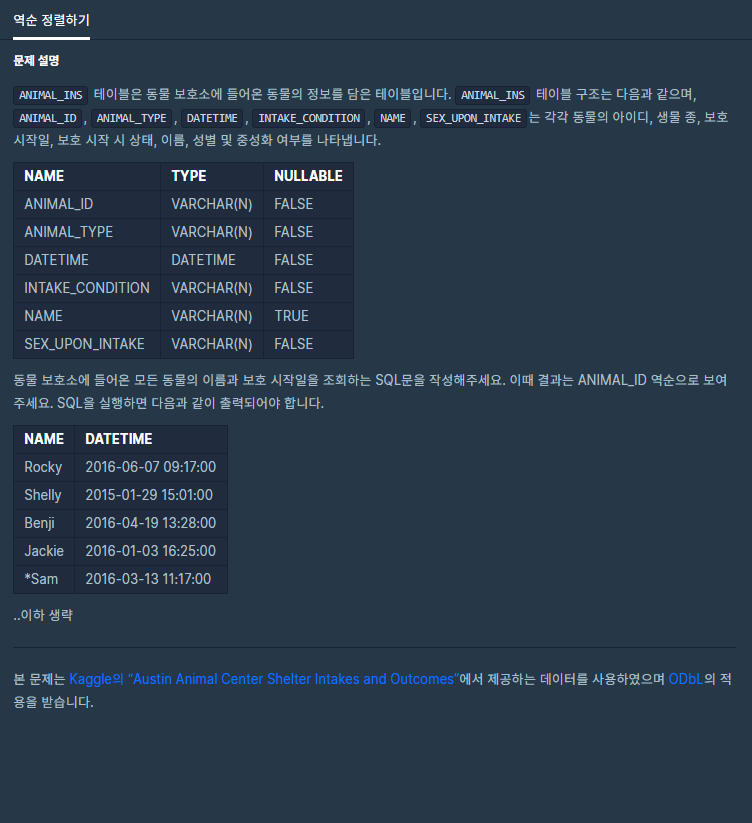 이고 ANIMAL_ID 역순으로 보여주어야 하므로