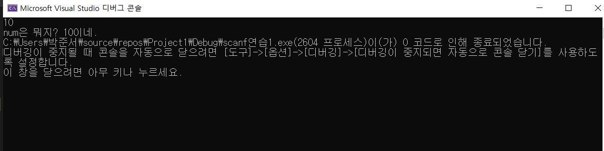 (위 코드는 visual studio 2019라 scanf_s를 사용하였다.2019가 아니라면 scanf를 사용하여도 된다!)