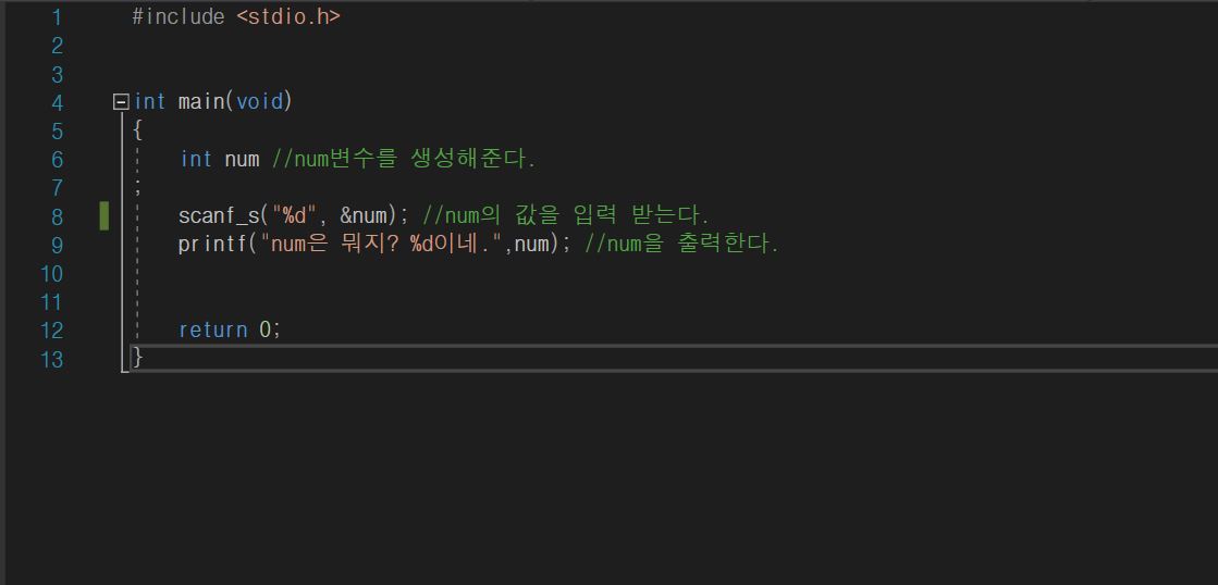 (위 코드는 visual studio 2019라 scanf_s를 사용하였다.2019가 아니라면 scanf를 사용하여도 된다!)