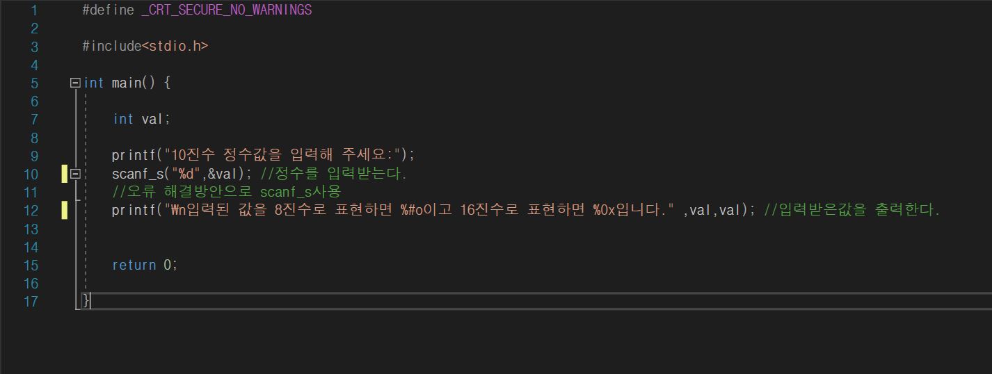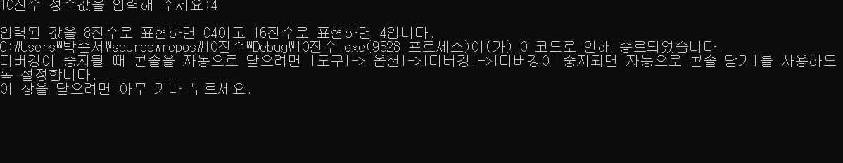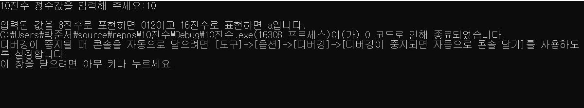 이번 코드는 10진수 정수 값을 입력받아서 8진수 혹은 16진수로 나타내는 코드이다.