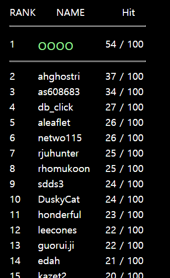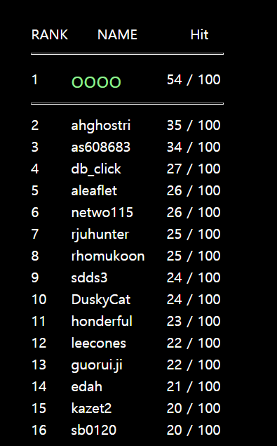 사이트에 들어가면 여러명의 아이디와 순위 점수가 나타납니다.