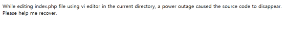 index.php를 vi editor를 이용해 편집하던 중 전원이 꺼져 소스코드가 사라졌다. 복구해달라