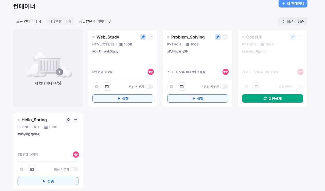 무료인 데다가 컨테이너를 5개씩이나 주기 때문에 나름 꽤 유용하게 사용하고 있었지만..