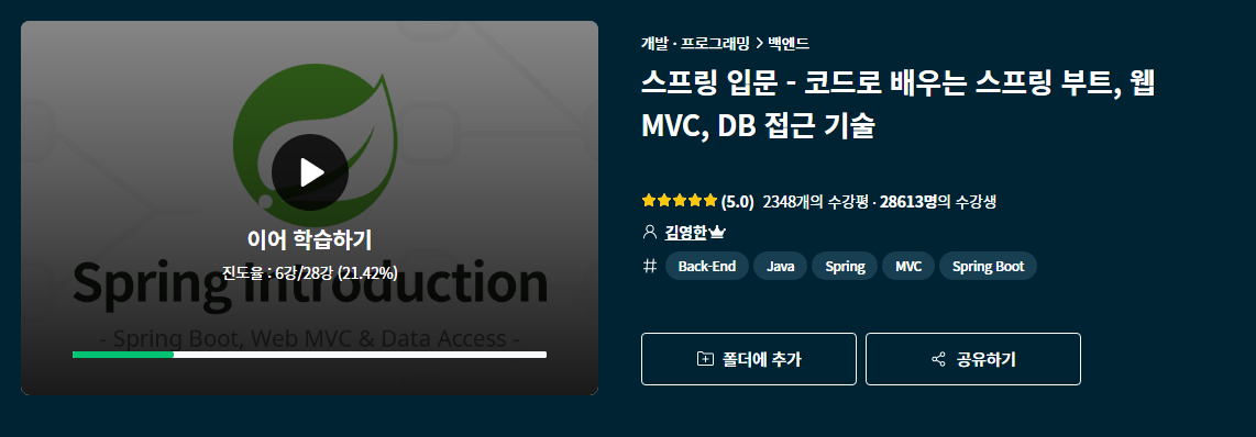 마침 인프런을 찾아보니 스프링에 관한 강의가 있어서 들으면서