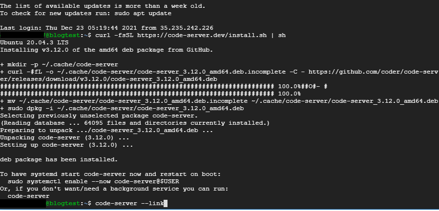 curl -fsSL https://code-server.dev/install.sh | sh