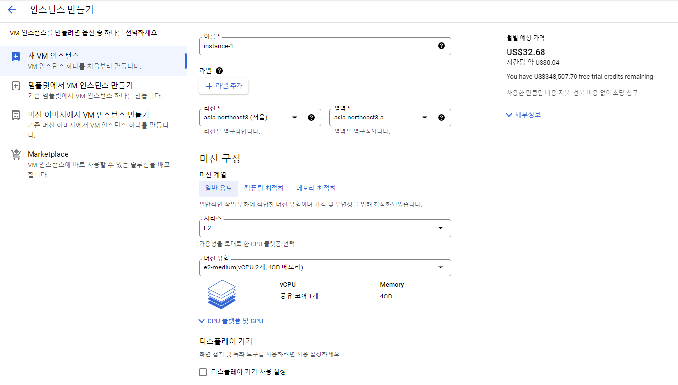 이렇게 VM 인스턴스 메뉴가 나타난다.