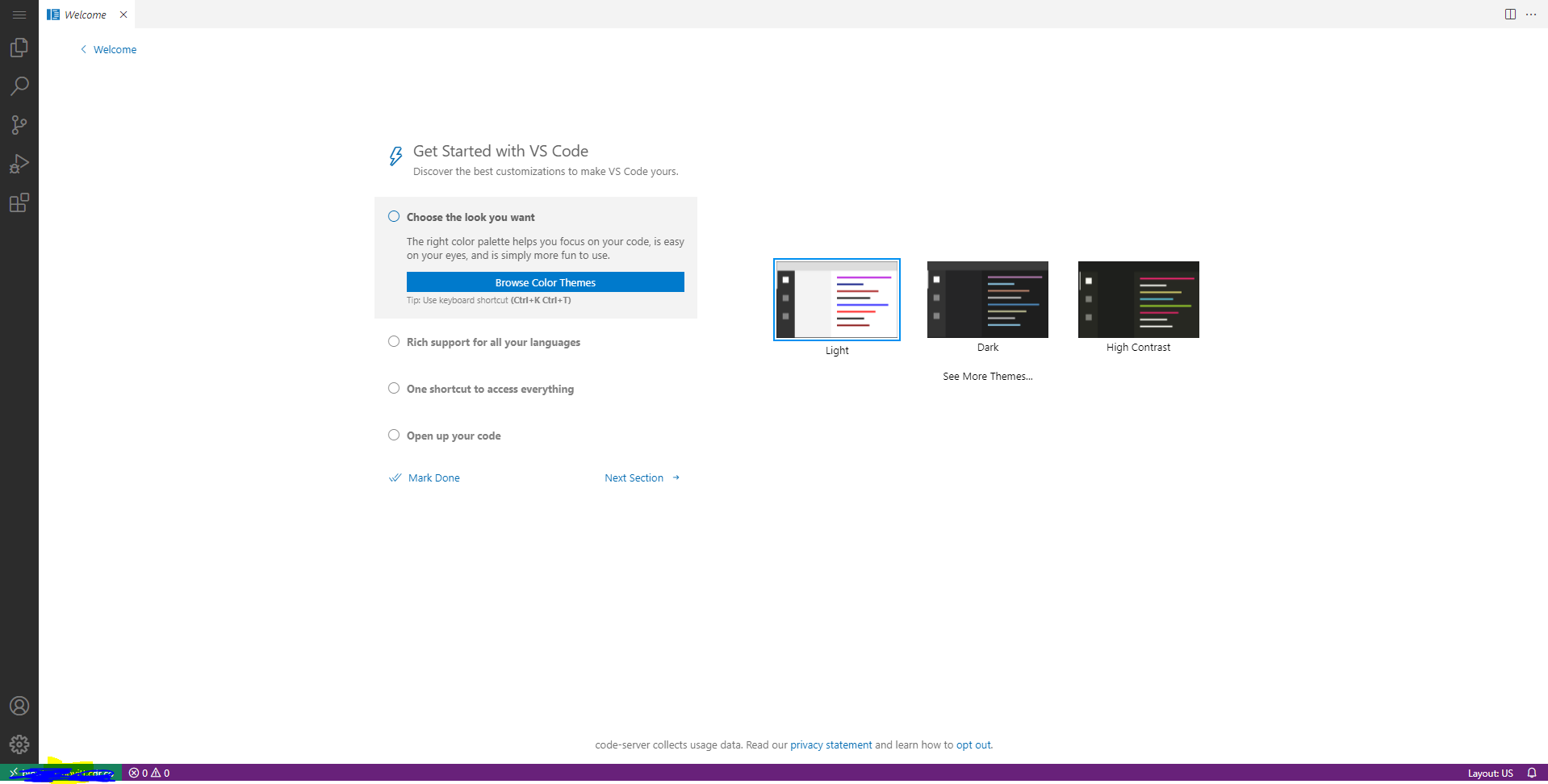 를 입력하면 Code Server 가 설치된다.