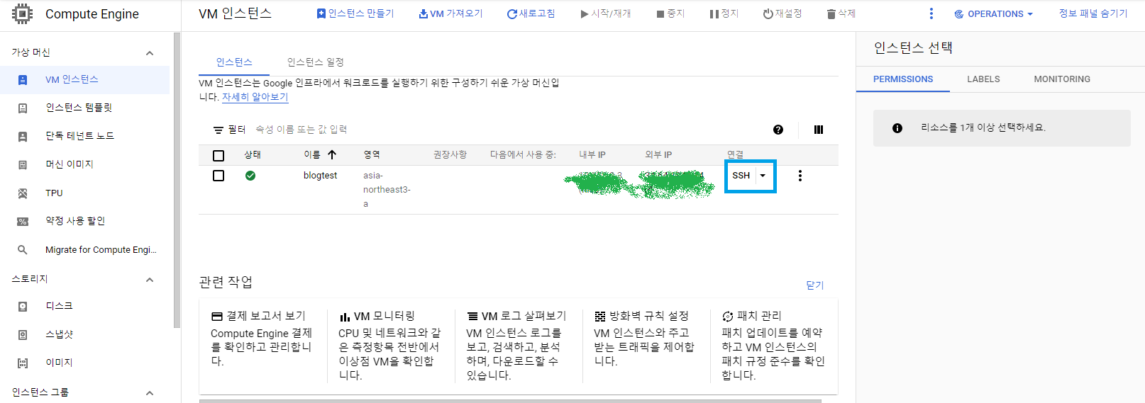 VM인스턴스 메뉴에서