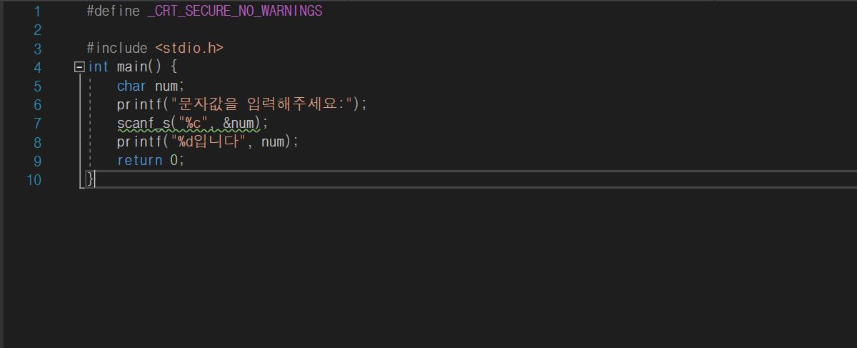 문자값을 입력받을때에는 char형 변수와 %c를 사용해주어야 합니다!