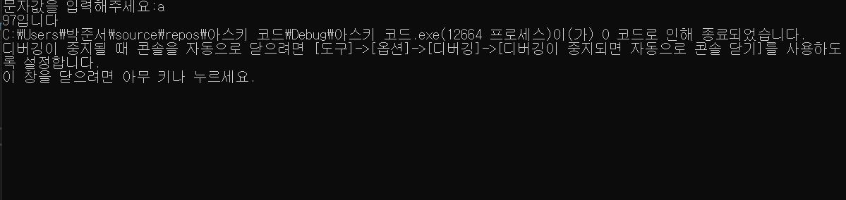 이 코드는 그러한 아스키코드값을 알려주는 코드라고 할 수 있습니다!